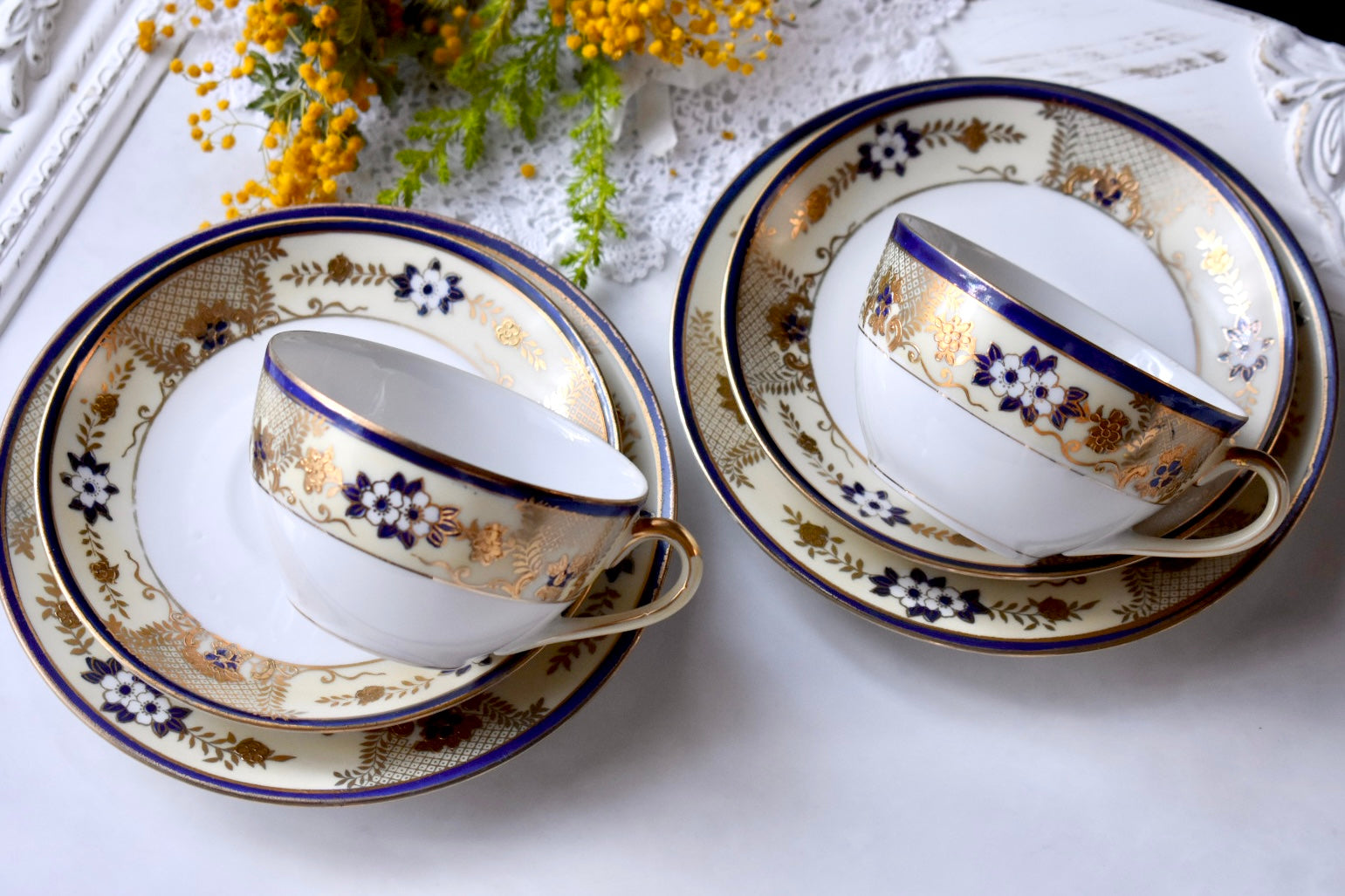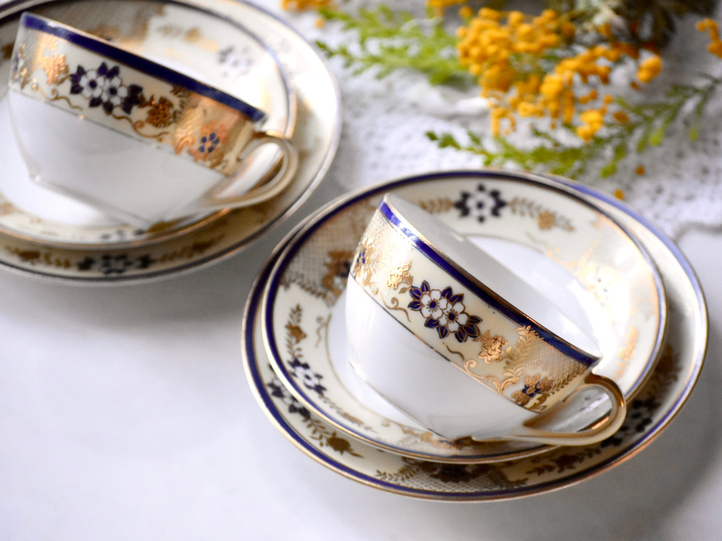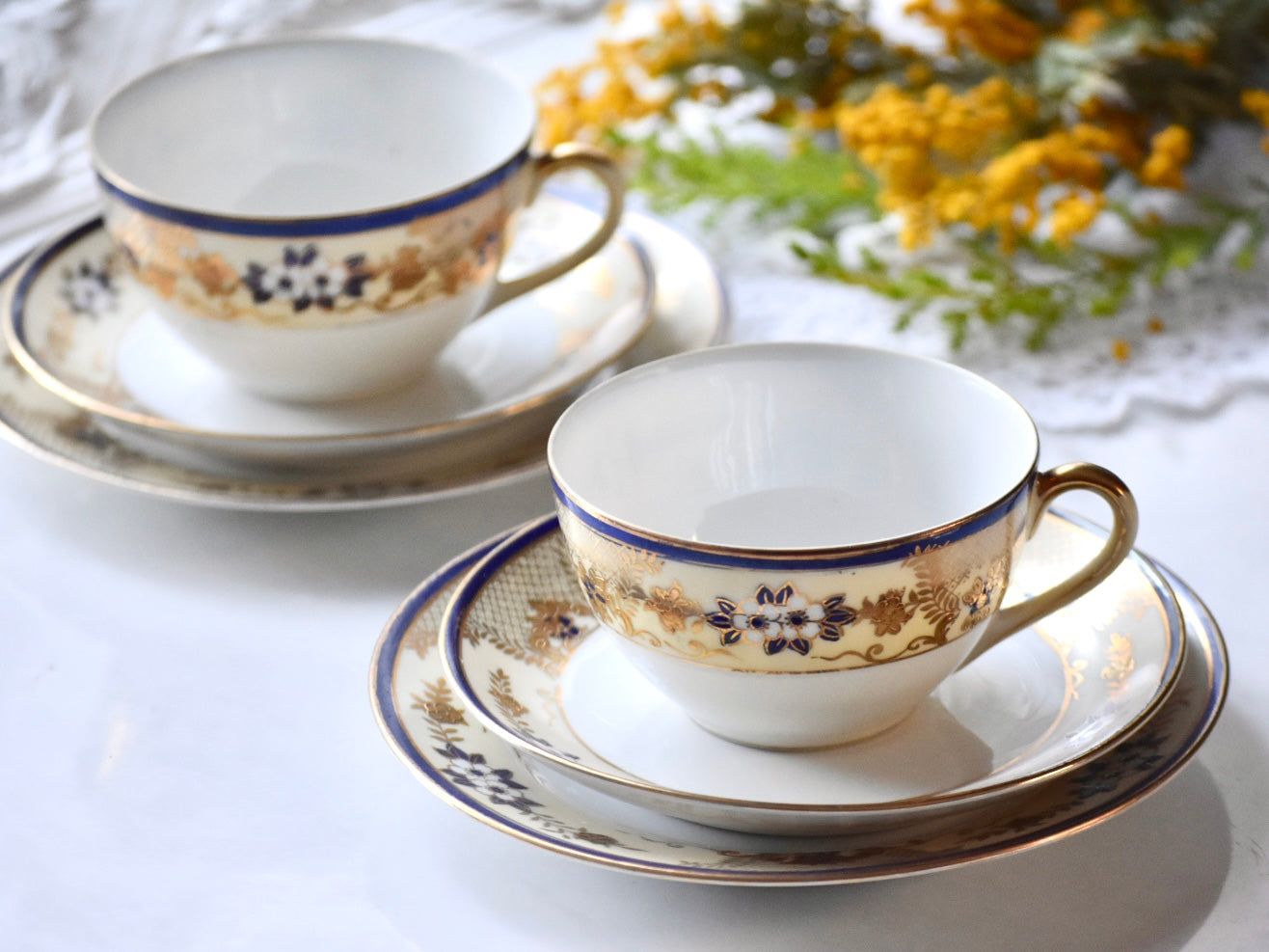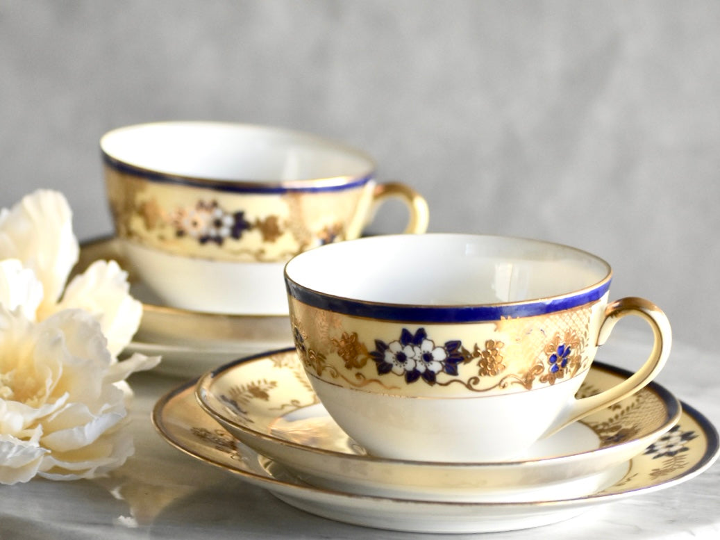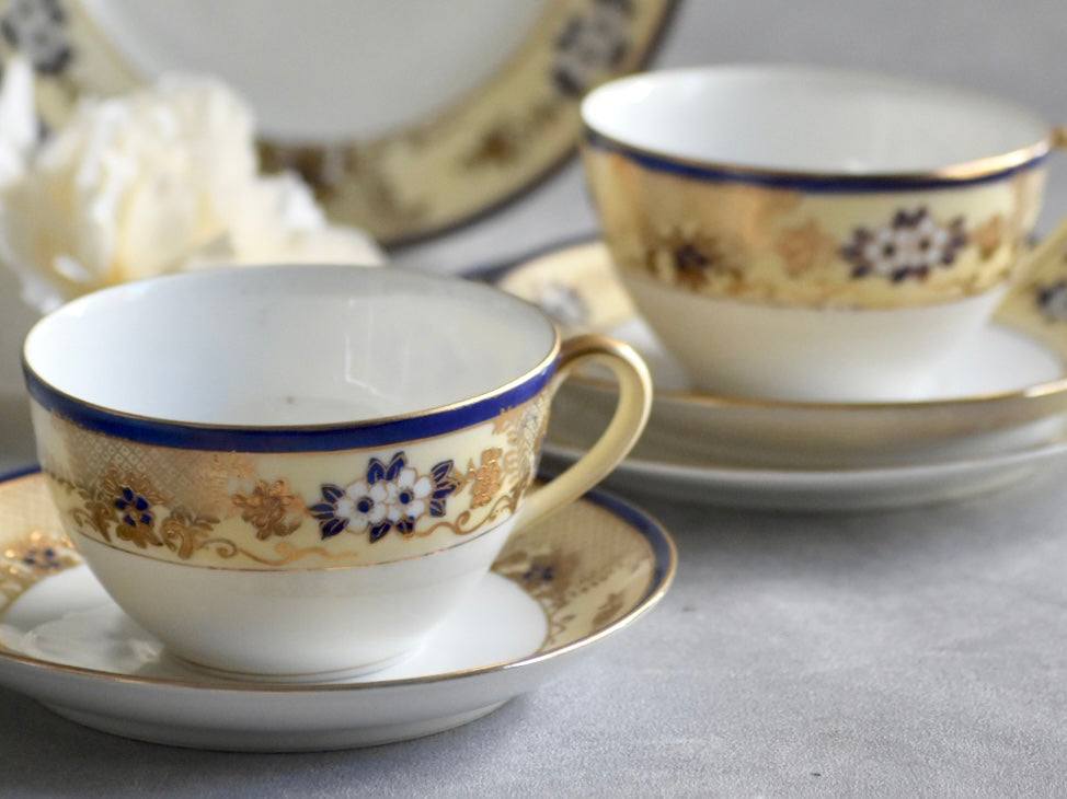 オールドノリタケの紅茶用のペアのトリオセットをご紹介いたします。