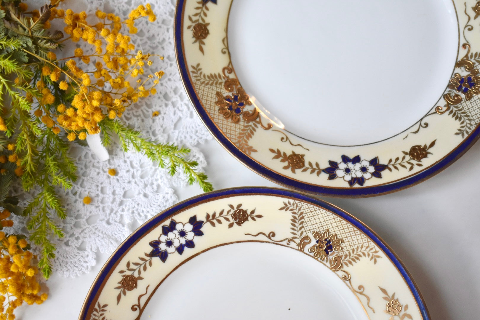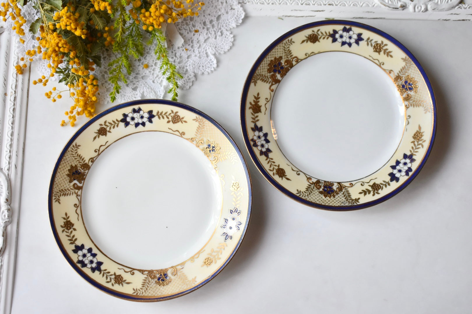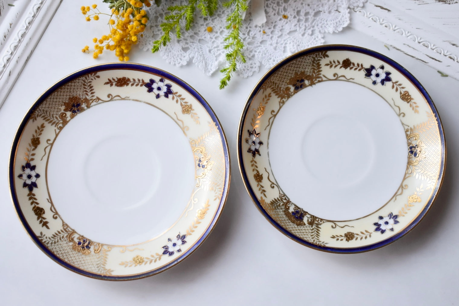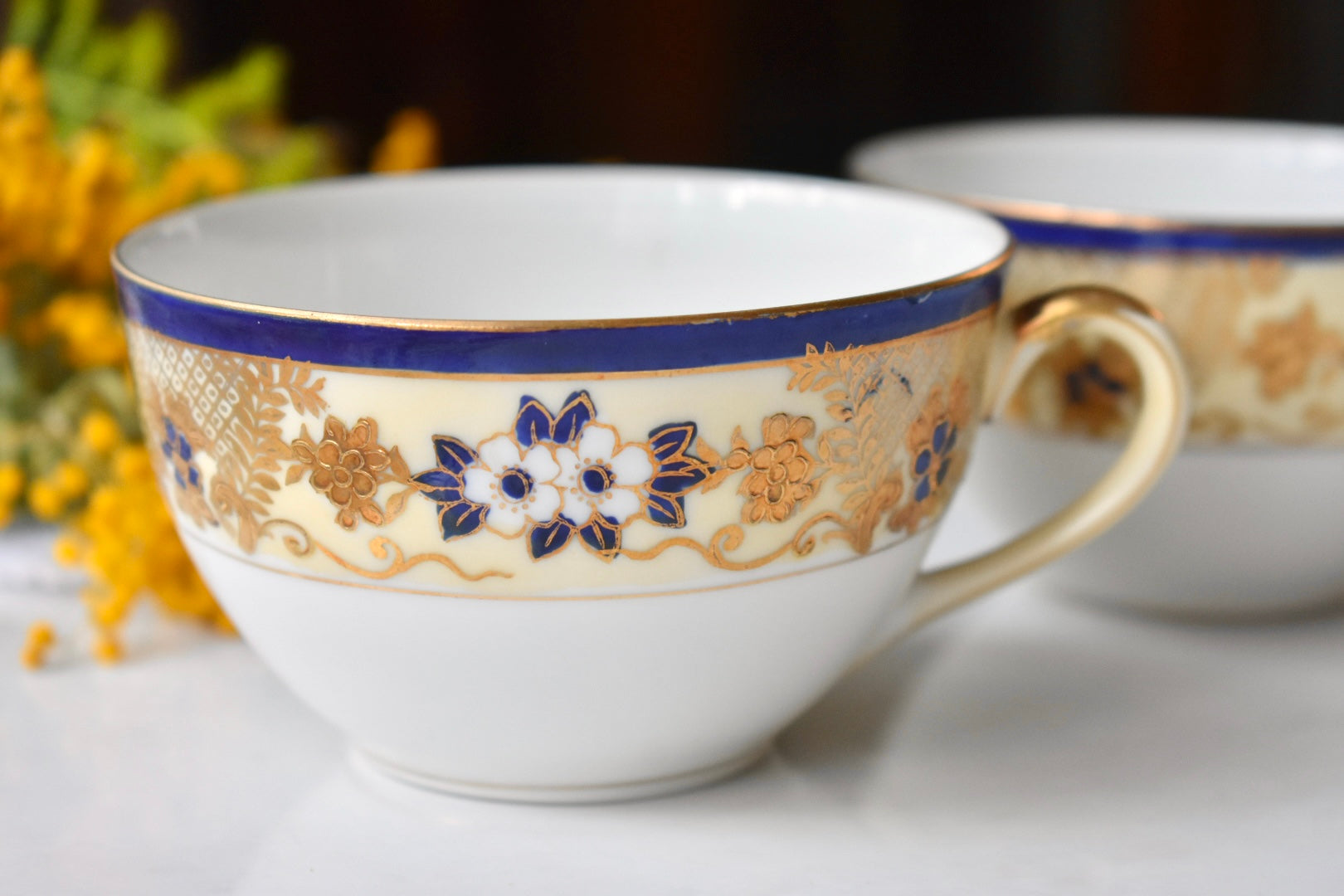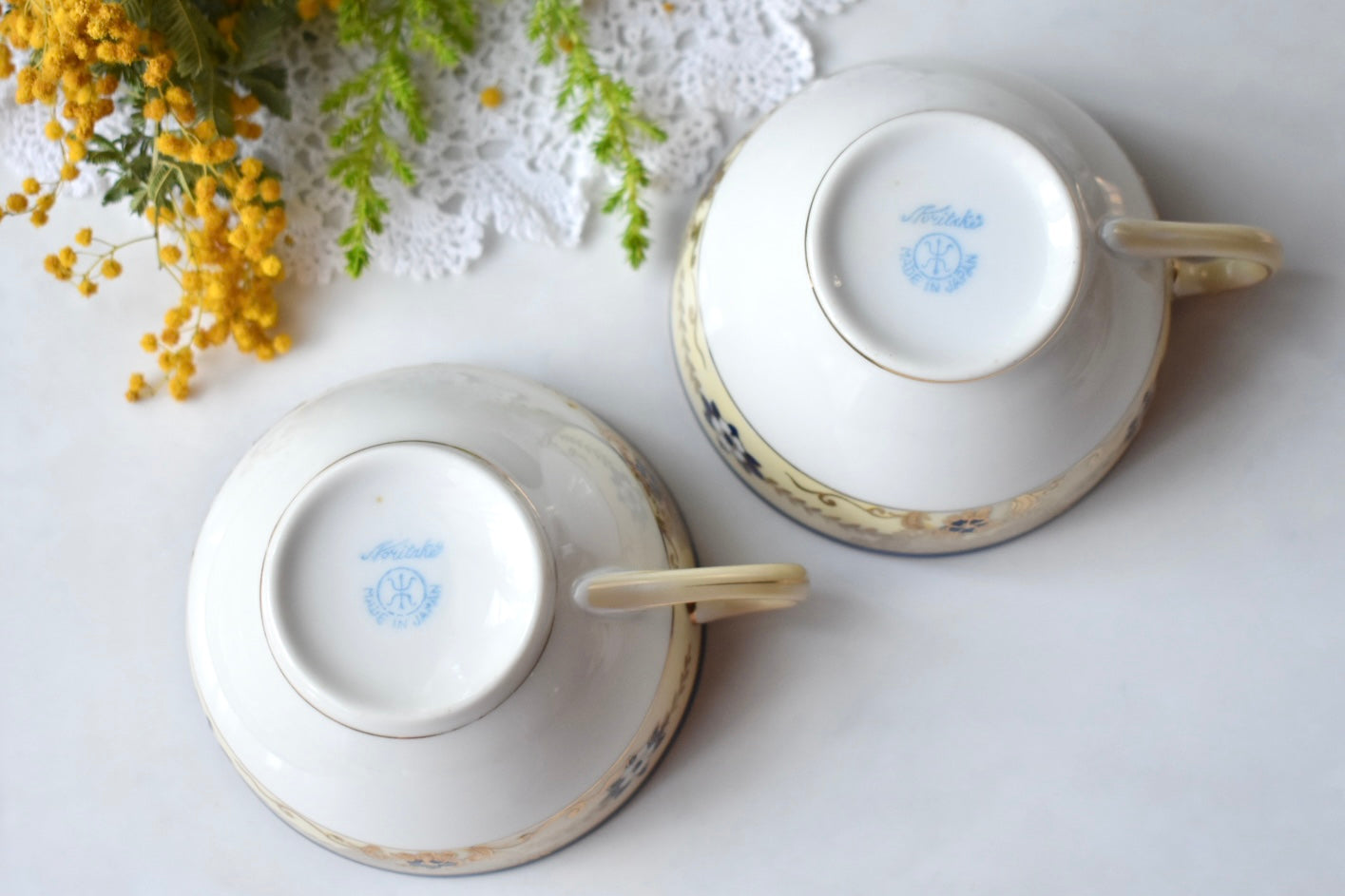 オールドノリタケの紅茶用のペアのトリオセットをご紹介いたします。